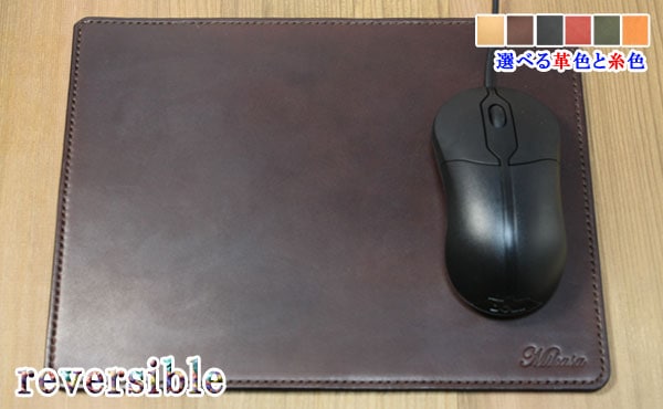 栃木レザー マウスパッド(リバーシブル)Sサイズ 小型【オーダーメイド お好みの革色糸色選べます】