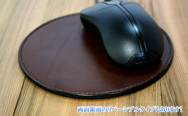 厳選された天然ヌメ革総手縫いのまんまる丸型マウスパッド・サークルです。