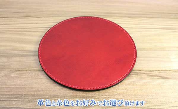 栃木レザー マウスパッド 丸形【オーダーメイド お好みの革色糸色選べます】