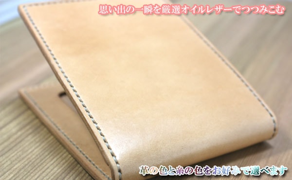 ![]() ![]() 革職人が総手縫いで作る「いつもそばに」持ち出せるフォトスタンドです。 手に馴染みやすい栃木レザー製オイルレザーで愛情深い写真をつつみこむぬくもりが特徴です。 携帯できるのでバッグにいれて二つ折り財布型になっているのでバッグに入れて携帯して、机の上で広げてフォトスタンドとして使え、思い出の写真をいつでもそばに置けます。 また、天然なめしヌメ革ならではの風合いと時間を経ることによる経年変化(エイジング)も同時に楽しめます。 内側は革の風合いを重視し繊維が詰まった革本来の表情をお楽しみいただけ、さらに写真の出し入れがしやすい前面透明フィルム無しの牛革100%にこだわったレザーアイテムです。 ◎サイズ重量(机の場所をとらない2つ折りサイズ) 横向きタイプ:縦約104mm×横約145mm(閉じた状態)×厚さ約8mm(閉じた状態) 重量約80g 縦向きタイプ:縦約137mm×横約112mm(閉じた状態)×厚さ約8mm(閉じた状態) 重量約80g ![]() ![]() ![]() ![]() ![]() 色はナチュラル・チョコ・ブラック・レッド・グリーン・オレンジの6色よりお選びください。 糸色との組み合わせで72通りあり、自分好みの組み合わせを楽しめます。 一番人気は落ち着いた色のチョコカラーです。色合いに深みのあるレッドカラーも人気急上昇! ![]() 色はナチュラル・チョコ・ブラウン・ブラック・レッド・グリーン・ホワイト・ブルー・イエロー・カーキ・オレンジ・ローズの12色よりお選びください。 選択に迷ったらナチュラルカラー(写真の一番左の糸色)か選んだ革色と同系色にするのがお勧めです。 ![]() ミカサレザーの革製品はすべて職人による手作りです。美しい縫い目の表情と、革の表面に糸が埋まるように溝彫を行ったうえに二本の糸が交差することによりほつれにくく強いという特性をもつ菱目打ち総手縫いです。これは革の厚さや間隔を調整しながら目打ちの方向や一針一針引っ張る力加減を微妙に調整して縫うなど、大変に手間がかかりますが、この製法を貫いています。また、革の裁断も数種類の革包丁を駆使し、仕上げも風合いを大切にするためモーターツールを使わず幾度となく反復工程を行い完成させます。このため出来上がる製品は一つ一つ微妙に異なり、世界に一つだけの愛すべき革製品となるのです。 ![]() ![]() 使用している革は、国内最高タンナーである「栃木レザー」製のオイルレザーです。 伝統的な製法を守りながら20もの工程を手間をかけることを惜しまず一枚一枚丁寧に作りあげました。長年の経験により、革の状態を見極めながら各工程は進められています。それは使う人の手に馴染み、使うほどに愛着を感じる革となります。 オイルレザーは、ミモザのタンニンエキスでなめし、さらにケブラチョの木質部から抽出されたタンニンエキスで、約50日間の時間をかけてじっくりなめし込み、動物脂をたっぷりと含ませた多脂革に、改めてタンニンとオイルをふくませ、染色を施し、さらにオイルを塗り込んだ素上げの革です。タンニンでしっかりと繊維の締まった硬さにのなかに柔軟性のある「コシ感のある革」に仕立て上げられてあります。また、染色はすべて芯通しで、染料をしっかりと中まで浸透しています。 ![]() ミカサレザー革製品の皮革は、繊維が細かく詰まり最も良質といわれるクロップ部分(腰部分と背中部分)のみを切り取りじっくりと染色・加脂したものです。 ※天然皮革ですのでキズやシボがございます。あらかじめご了承ください。 ![]() 使用している糸は、大正12年より続く国内麻専門店の国産天然麻糸です。 粘度のあるローを丹念に糸の奥まで浸透するまで引き、革との相性がとても優れているロー引染天然麻糸です。革を縫う糸は麻糸以外にも科学合成糸やシニューなど様々ありますがミカサレザーでは革によく食い込み歳月と供に馴染んでゆく天然麻糸を使用しています。 ◎その他 パソコンのモニターによっては、色の見え方が実際の商品と異なることがございます。 ヌメ革のお手入れには、柔らかさと滑らかさを保つため「ミンクオイル」をぬると深みのある色と艶が増します。 ![]() |