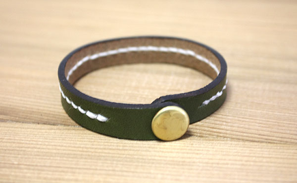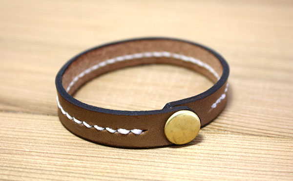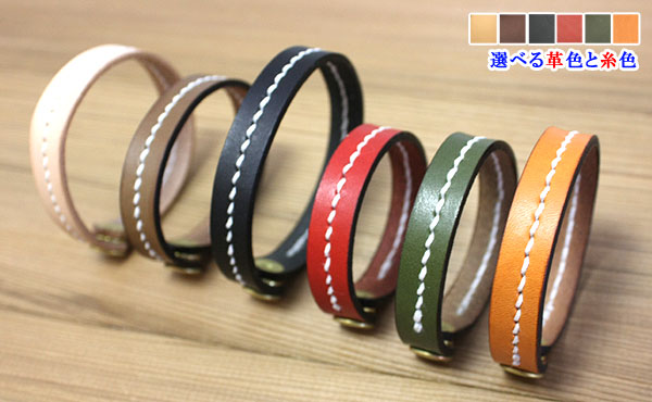 ![]() ![]() 自分好みの革色に選べる麻糸のステッチが印象的な天然ヌメ革レザーブレスレット。 お好みで組み合わせた革色と麻の糸色に真鍮製金具のボタンが輝きます。 厳選された栃木レザー社製のオイルレザーは使い込むほどにその表情を増して行きます。 10mm幅のシャープなデザインはスッキリとした印象でレディース用としてもメンズ用としてもお選び頂けます。 ご注文頂けるレザーブレスレットの内回りサイズは16cmから20cmまでご愛用されますオーナ様の腕に合わせて選べます。 革の端(コバ)や背面(床面)まで革職人がひとつひとつ丁寧に磨き上げますのでオーダーお待ち申し上げています。 ◎サイズ重量(選べる内回りサイズ) 内回り約16cm・17cm・18cm・19cm・20cmから選べます。 革自体の厚みは約2mm厚で使い勝手の良いレザーアイテムです。 こちらの商品は小型でスペースの制約がありますためイニシャル刻印は出来ませんことご容赦ください。 ◎アタッチメント(総真鍮製) 使いやすくコンパクトなボタンは総真鍮製のバネホック式です。 真鍮製ボタンの特性である、時と共にともに表情が変わりゆくエイジング(経年変化)をお楽しみください。 ![]() お好みの革色と糸色のステッチでオンリーワンのレザーブレスレットへ ![]() 革色ナチュラル ![]() 革色チョコ ![]() 革色ブラック ![]() 革色レッド ![]() 革色グリーン ![]() 革色オレンジ ![]() 色はナチュラル・チョコ・ブラック・レッド・グリーン・オレンジの6色よりお選びください。 糸色との組み合わせで72通りあり、自分好みの組み合わせを楽しめます。 一番人気は落ち着いた色のチョコカラーです。色合いに深みのあるレッドカラーも人気急上昇!