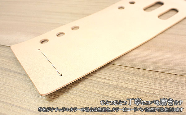 ![]() 色はナチュラル・チョコ・ブラック・レッド・グリーン・オレンジの6色よりお選びください。 糸色との組み合わせで72通りあり、自分好みの組み合わせを楽しめます。 一番人気は落ち着いた色のチョコカラーです。色合いに深みのあるレッドカラーも人気急上昇!