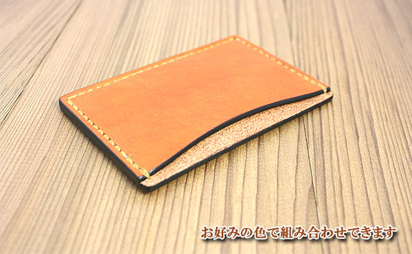 ぴったりサイズ(標準):縦約63mm×横約98mm×厚さ約4mm 重量約24g 大きめサイズ(幅広):縦約63mm×横約101mm×厚さ約4mm 重量約25g ◎カード入れ(1ヶ所) 挿入口はやわらかなカーブを描いたカード入れ1ヶ所。 クレジットカードや電鉄スイカ(suica/SUGOCA)や免許証等のカードケースとしても使います。 ![]() ![]() ![]() ![]() ![]() ![]() ![]() ![]() 色はナチュラル・チョコ・ブラック・レッド・グリーン・オレンジの6色よりお選びください。 糸色との組み合わせで72通りあり、自分好みの組み合わせを楽しめます。 一番人気は落ち着いた色のチョコカラーです。色合いに深みのあるレッドカラーも人気急上昇!