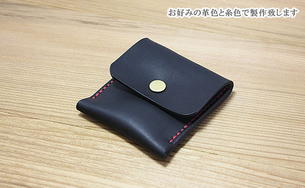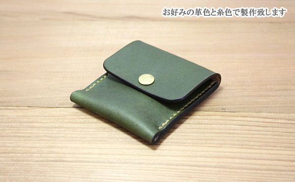 縦約82mm×横約75mm×厚さ約15mm 重量約30g ちょうどよい大きさで持ち運びに、ポケットにも便利なサイズです。 ◎小銭入れ(1ヶ所) コンパクトサイズでかわいいポケットは意外に以外に小銭が入ります。 開口部は総真鍮製のバネホックで止められています。 ◎アタッチメント(総真鍮製) 使いやすくコンパクトなボタンはバネホック式の総真鍮製です。 真鍮製ボタンの特性である、時と共にともに表情が変わりゆくエイジング(経年変化)をお楽しみください。 ![]() ![]() ![]() ![]() ![]() 色はナチュラル・チョコ・ブラック・レッド・グリーン・オレンジの6色よりお選びください。 糸色との組み合わせで72通りあり、自分好みの組み合わせを楽しめます。 一番人気は落ち着いた色のチョコカラーです。色合いに深みのあるレッドカラーも人気急上昇!