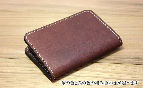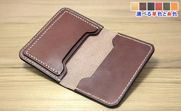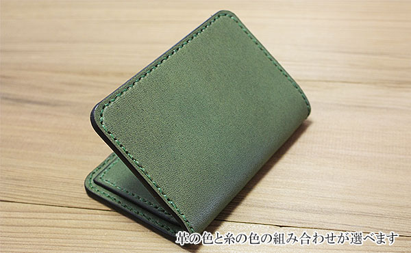 縦約80mm×横約110mm×厚さ約12mm 重量約70g ◎カード入れ(3ヶ所) クレジットカードや電鉄suicaや免許証等も入ります。 ![]() ![]() ![]() ![]() ![]() ![]() ![]() ![]() 色はナチュラル・チョコ・ブラック・レッド・グリーン・オレンジの6色よりお選びください。 糸色との組み合わせで72通りあり、自分好みの組み合わせを楽しめます。 一番人気は落ち着いた色のチョコカラーです。色合いに深みのあるレッドカラーも人気急上昇!