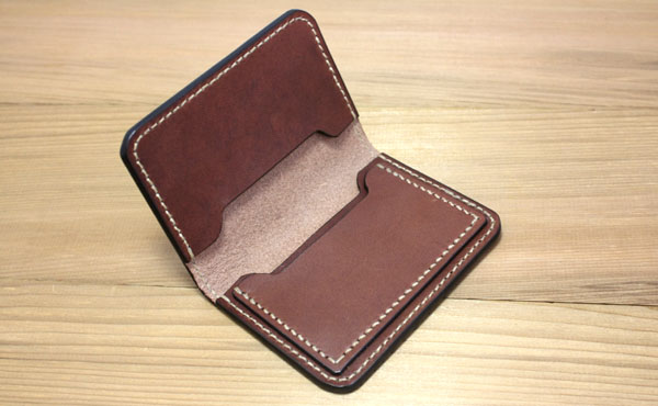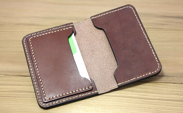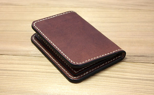 ![]() ![]() 本物の国産ヌメ革「栃木レザー」を持ち歩くちょっと贅沢な二つ折りカードカバーです。 総手縫いによるオイルレザーの手に吸い付くようなしっとりとした二つ折りカードケースです。 クレジットやsuicaや免許証等のカードケースで、お札入れやパスケース(定期券入れ)としても使えます。 裏表紙側の2か所は一般的な名刺サイズも入ります。 カードカバーに真鍮ボタンを使用したタイプも別途ございます。 ◎サイズ重量(カードや名刺、折りたたんだお札も)