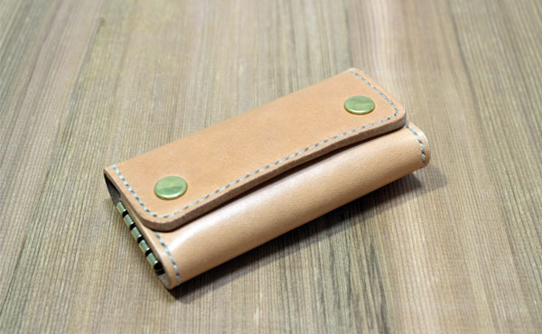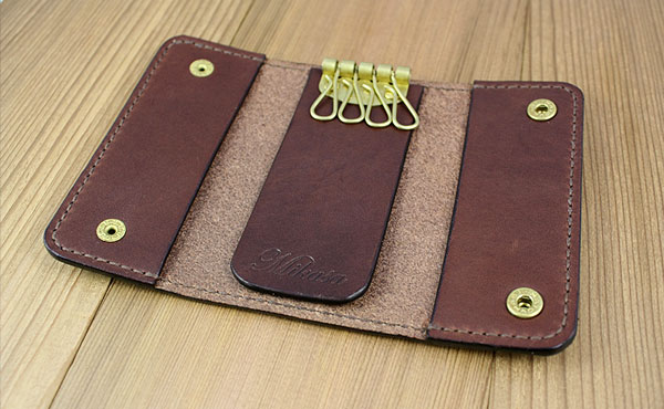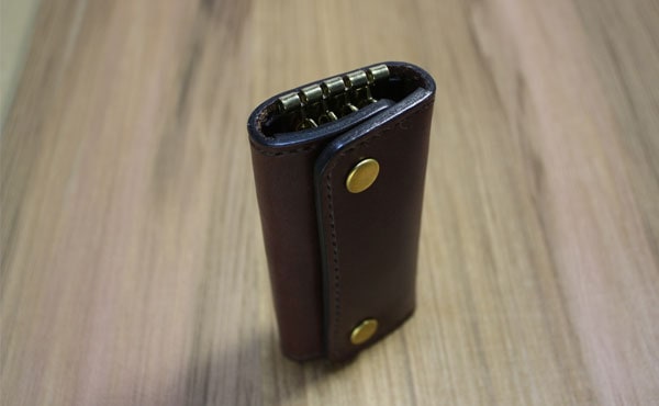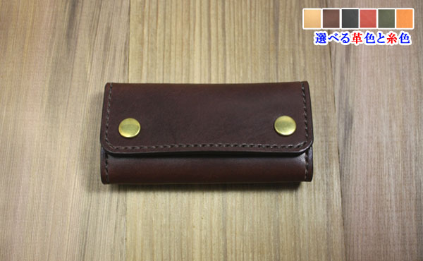 ![]() ![]() 栃木レザーと2つのボタンが印象的な4連キーケースです。 しっとりとしたオイルレザーの感触が手に馴染み、総手縫いがハンドメイド特有のあたたかさを感じられる4連キーケースです。 総真鍮のバネホック2つと背中のカシメが印象的なキーケースです。 金具はスイス・アミエット(amiet)社製4連キーホルダーを使用。 (ご注文時期により金具の形状は変わる場合がございます) オーソドックスなキーケースは使い勝手もよく携帯時もかさばりません。 カット断面(コバ)も一つ一つ職人が手間を惜しまず磨き上げたこだわりの一品です。 革色と糸色を変えると雰囲気もがらりと変わりますので、お好みの色でオーダーしてみて下さい! 写真は革と糸ともにチョコカラーです。 ◎サイズ重量(無駄のないキーケース)